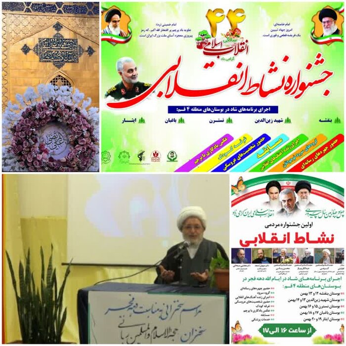 همچنین همزمان با سالروز میلاد مولود کعبه، حضرت امام علی(ع) و ایام الله دهه مبارک فجر ، اولین جشنواره مردمی "نشاط انقلابی" در بوستان ان طبقاتی "شهید زین الدین" واقع در بلوار شهید کریمی قم برگزار شد.